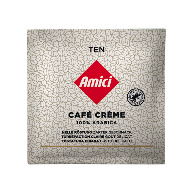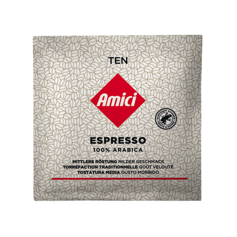 La nostra crema deve la sua straordinaria densità all'esclusivo sistema Reniala (TEN), che contiene 10 grammi di caffè finissimo per porzione. Le nostre cialde Reniala System (TEN) sono realizzate in carta filtro compostabile e contengono caffè tostato in modo eccellente e macinato finemente. Consentono a ogni amante dell'espresso di assaporare appieno il terroir di ogni chicco, caratterizzato dal clima, dal terreno, dalla genetica e dalle persone che lo coltivano.